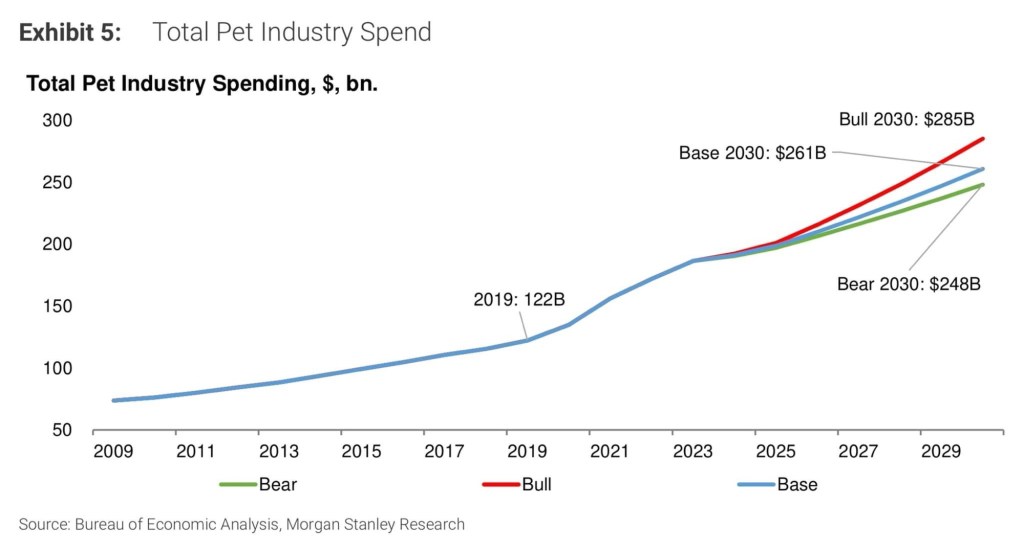 วันนี้ขอหยิบชาร์ท Morgan Stanley จากชิ้นที่เพิ่งออกมาไม่นาน ว่าด้วยอุตสาหกรรมสัตว์เลี้ยงครับ ซึ่งคาดการณ์ว่าปีนี้น่าจะเป็นจุดที่อุตสาหกรรมสัตว์เลี้ยงอยู่ในจุดต่ำสุดและจะผ่านไป ก่อนที่จะกลับมาสดใสในปี 2025 ซึ่งจะเป็นเทรนด์ยาวๆ ครับ