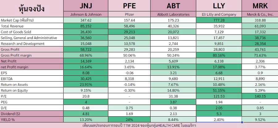 นอกจากนี้จะเห็นว่า ธุรกิจมีการลงทุนใน Research and Development วิจัยและพัฒนายาอย่างต่อเนื่อง ดูจากงบการงบที่ลงทุนเพิ่มขึ้นทุกปี นี่เป็นส่วนหนึ่งที่ทำให้ราคาหุ้นขึ้นตลอด เพราะพัฒนาอย่างไม่หยุดยั้ง ดูได้จากภาพแรกที่ราคาเขียวหมดทั้งตาราง