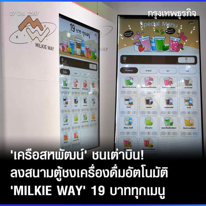‘เครือสหพัฒน์’ ชนเต่าบิน! ลงสนามตู้ชงเครื่องดื่มอัตโนมัติ ‘MILKIE WAY’ 19 บาททุกเมนู
