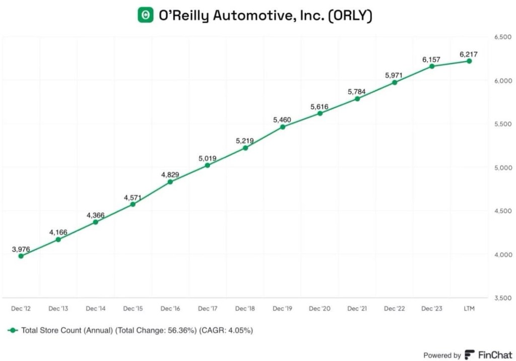 ถึงแม้อุตสาหกรรมโตแค่ปีละ 1% แต่ส่งผลให้ O’Reilly สามารถทำ same store sales growth ได้เฉลี่ยประมาณ 6% ต่อปี ในช่วง 10 ปีที่ผ่านมา