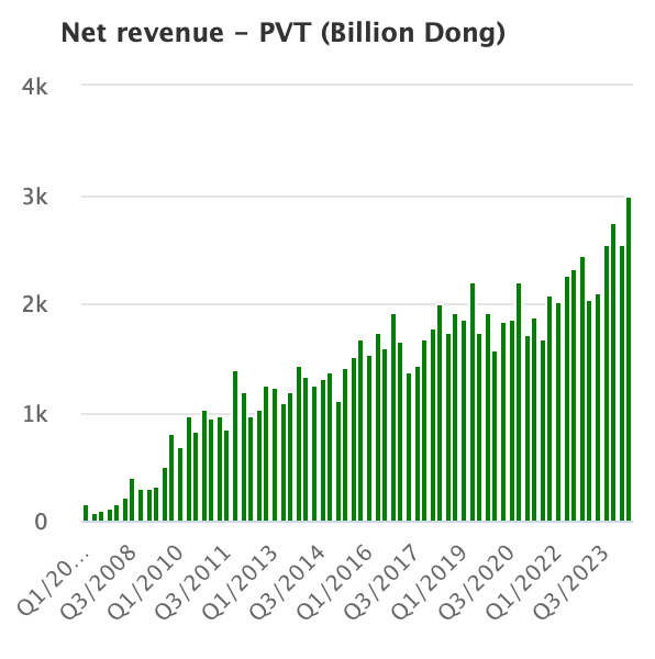 แม้ว่าฝ่ายบริหารของ PV Trans จะตั้งเป้ารายได้ในปี 2024 ไว้อย่างระมัดระวังที่ 8,800 พันล้านดอง และกำไรสุทธิ 760 พันล้านดอง ลดลงจากปี 2023 แต่บริษัทนี้มักตั้งเป้าต่ำกว่าความเป็นจริง โดยผลประกอบการจริงมักจะเกินเป้าเสมอ